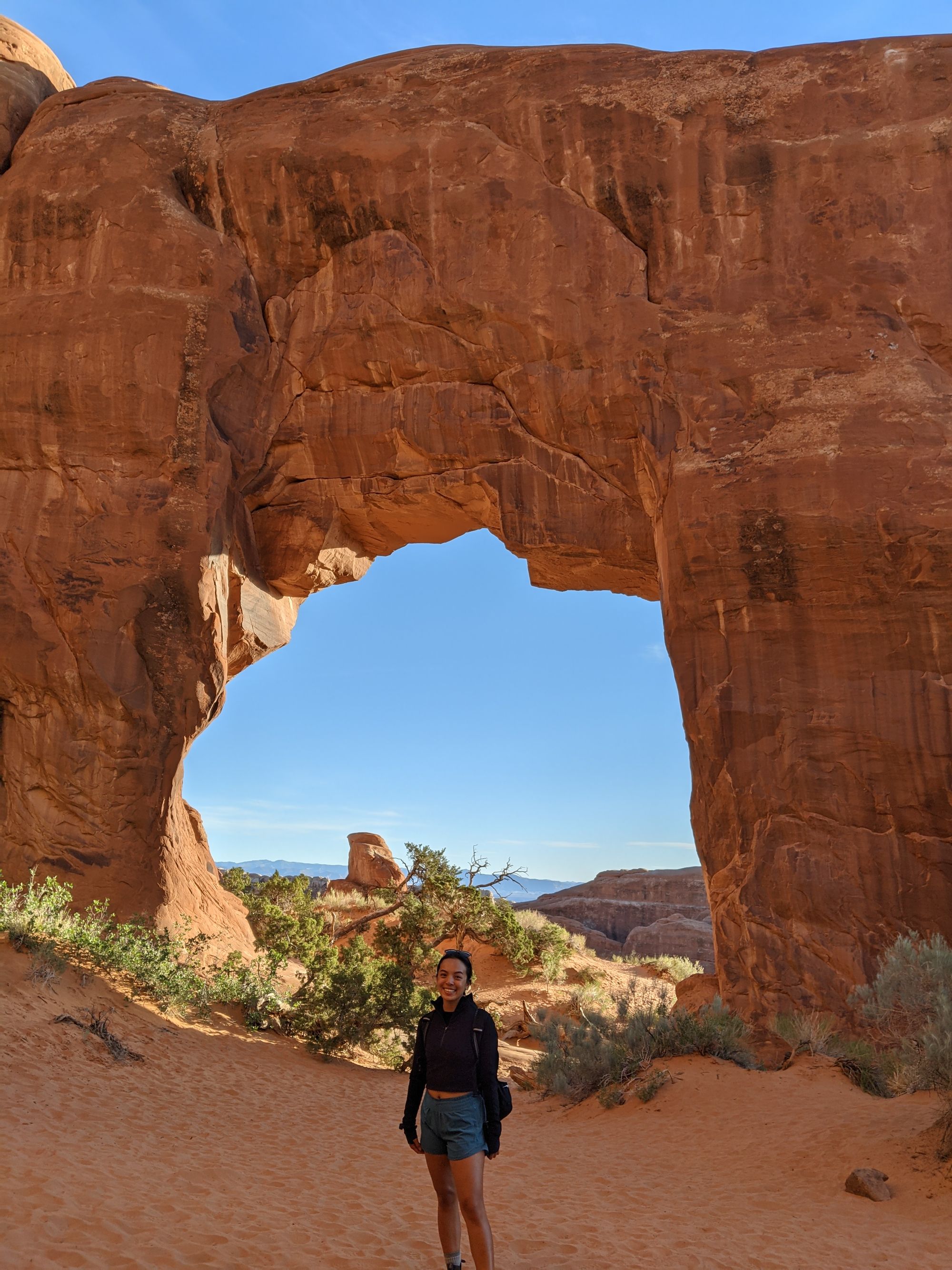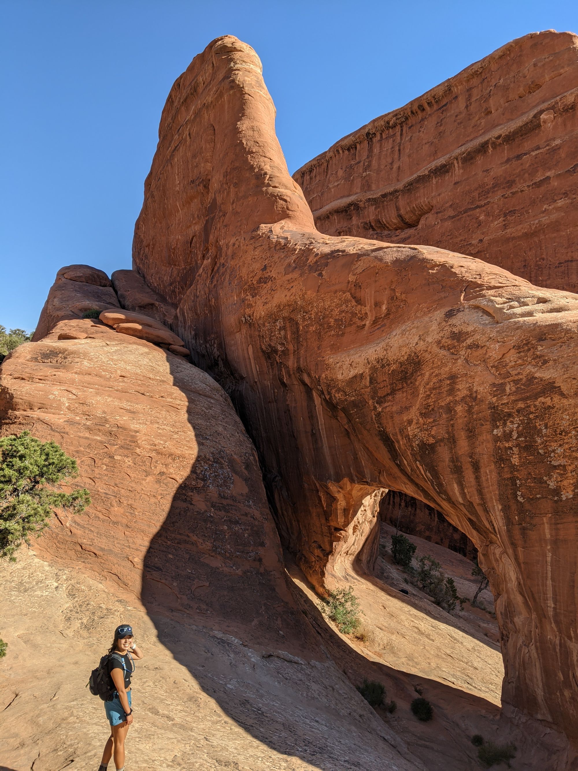 We had to double back a little bit when Jessica realized that she dropped her sunglasses. But luckily, we were able to find it in the sand by the Double O Arches. So glad we did.
