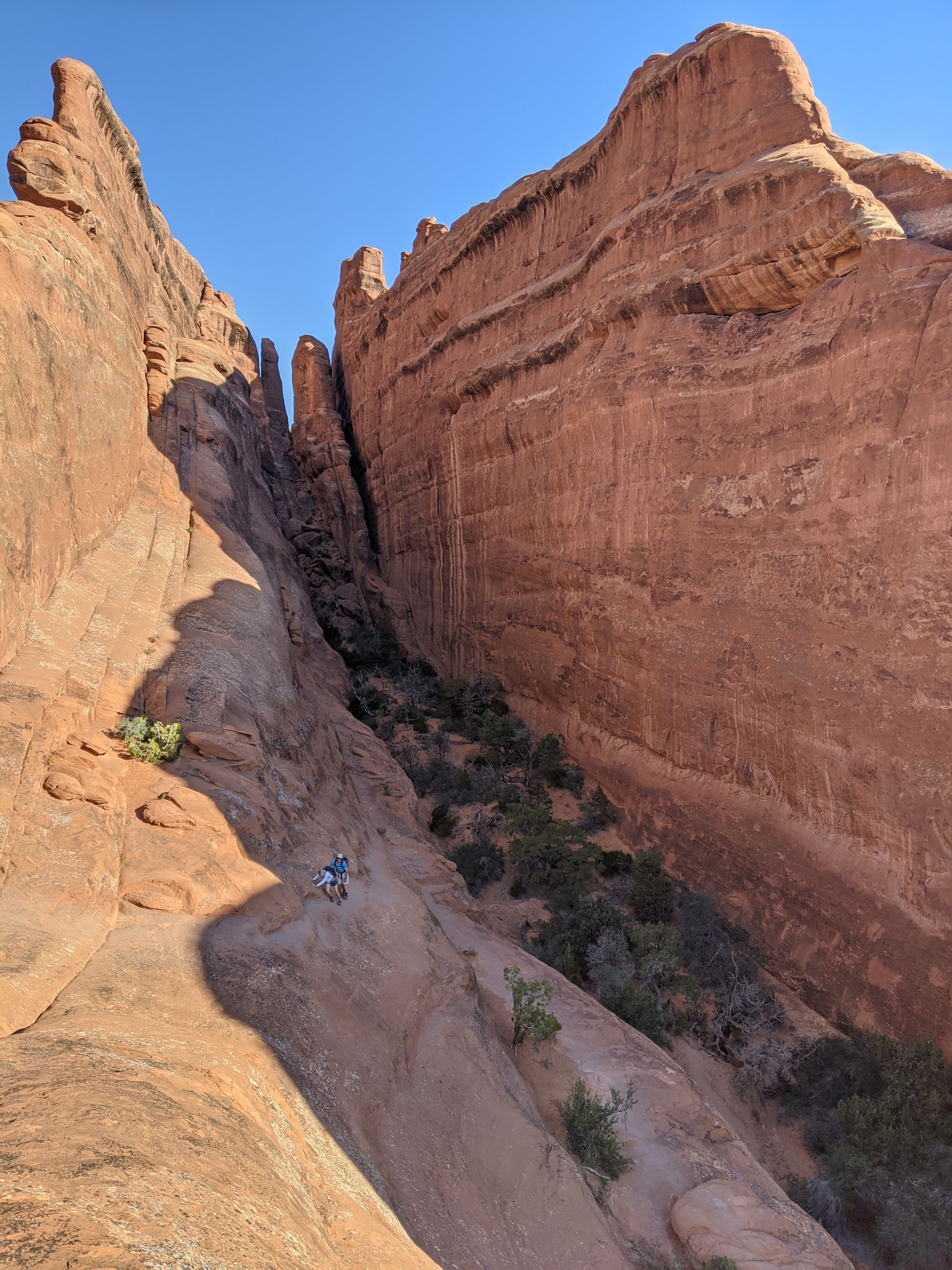 Just before the Landscape Arch, you split off to the "primitive trail" which is a lot of sand and over the rocks. It's much quieter with a lot less people on it and part of the trail gets a little hard.